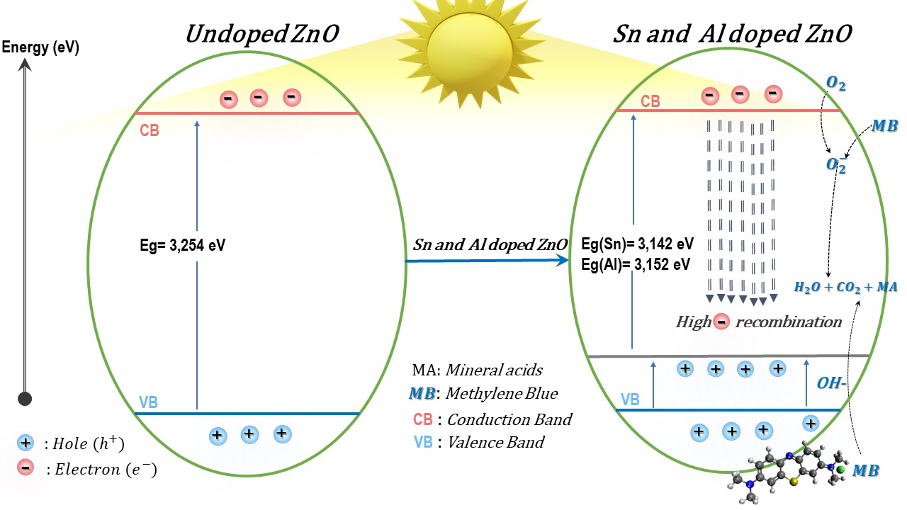 1. ZnO, Sn- and Al-doped thin films were synthesized by spray pyrolysis.